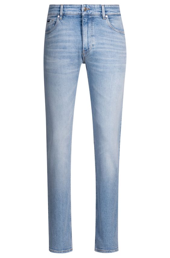 Disse slim fit jeans fra BOSS Menswear har et friskt, casual look i lyseblå denim med stræk for god bevægelsesfrihed. Med en slank pasform, sidelommer foran og påsyede lommer bagpå. Lukning med knap og lynlås, smalle ben og standardlængde.