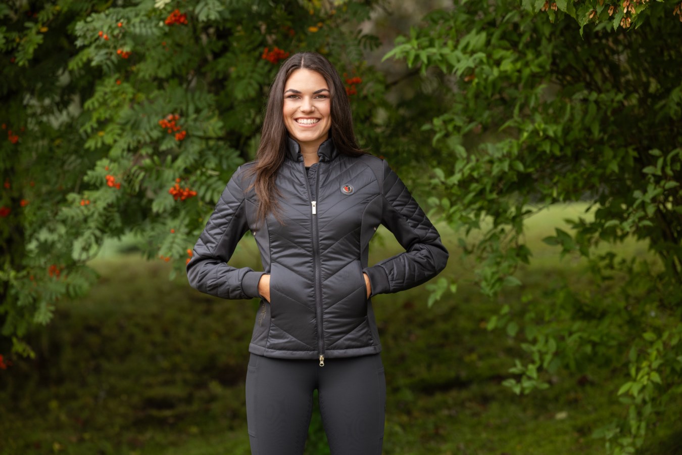 Covalliero kombi ridejakke til damer kombinerer sporty design med høj funktionalitet og komfort. Den feminine, figursyede pasform og det ultralette materiale gør jakken til et oplagt valg for den stilbevidste rytter, der ønsker bevægelsesfrihed og åndbarh