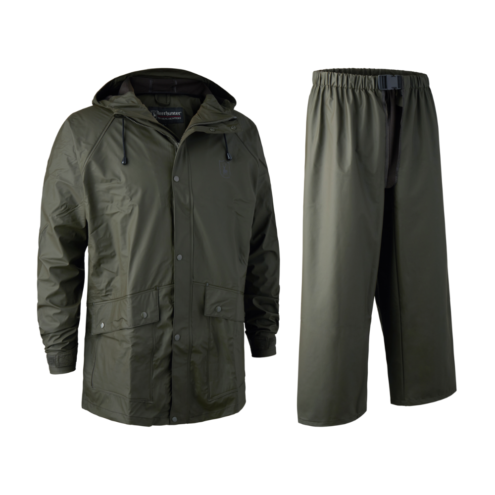 Deerhunter Hurricane Regnsæt dame giver fuld regnbeskyttelse med jakke og bukser i PU-coating og 2-vejs-stræk. Vandtæt, slidstærkt og ideelt til jagt, outdoor og hverdag. Unisex Vandsøjletryk: 5000 mmLevering: 2-4 hverdage Størrelser i restor