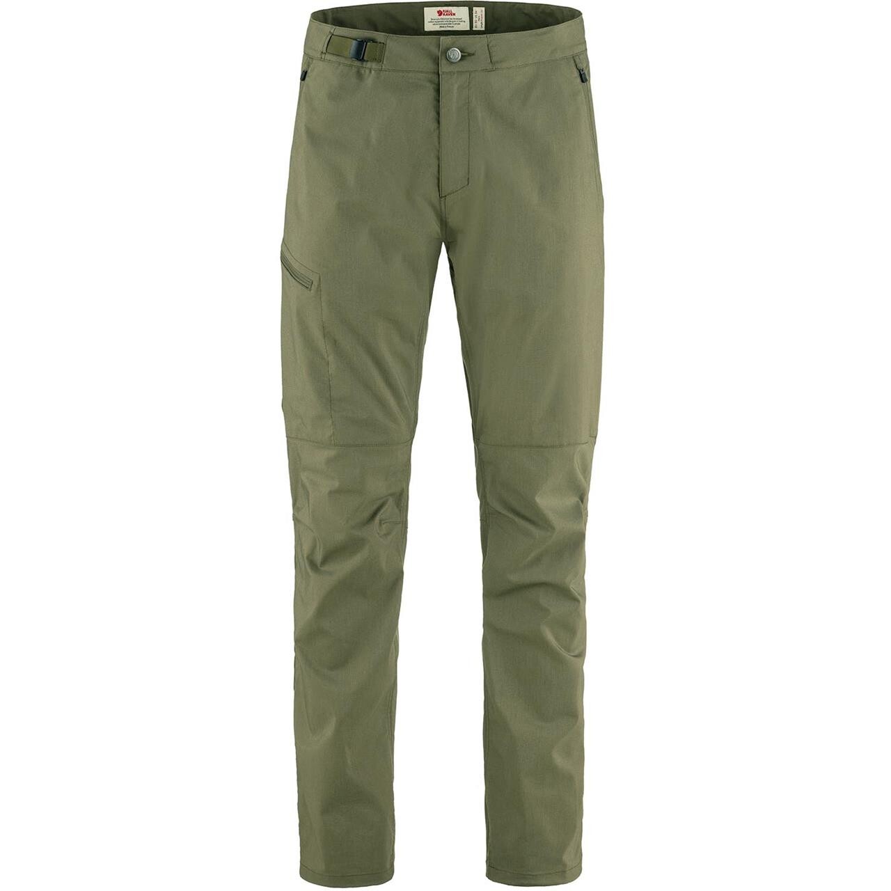 Lette, komfortable og pakbare trekkingbukser til varme klimaer. Fjllrven Mens Abisko Hike Trousers er lavet af G-1000 Air Stretch med genanvendt polyester og økologisk bomuld. De er lidt smallere forneden, har et integreret bælte til justering af taljen