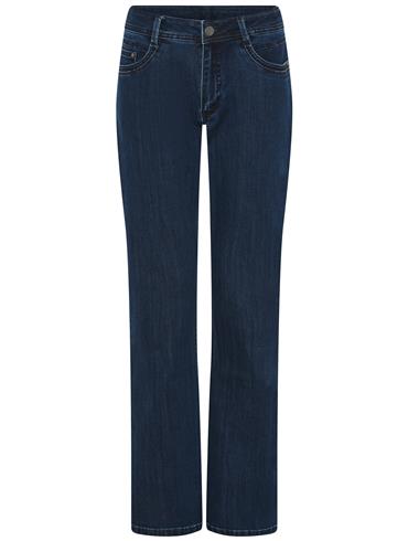 Smarte jeans fra Cero – model Emma. Buksen har påsyede lommer på fronten og paspolerede baglommer. Den er med bootcut og har bæltestropper rundt. Længde: 80 cm. Kvalitet: 69 bomuld – 29,5 reprevepolyester – 1,5 elastan