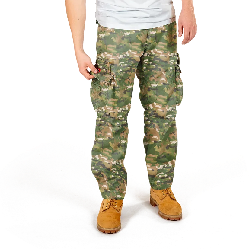 Multi Camo Cargo Bukser er et uundgåeligt valg til din garderobe. Designet af Molecule Fashionmanifest, forener disse bukser stil med praktisk funktionalitet.