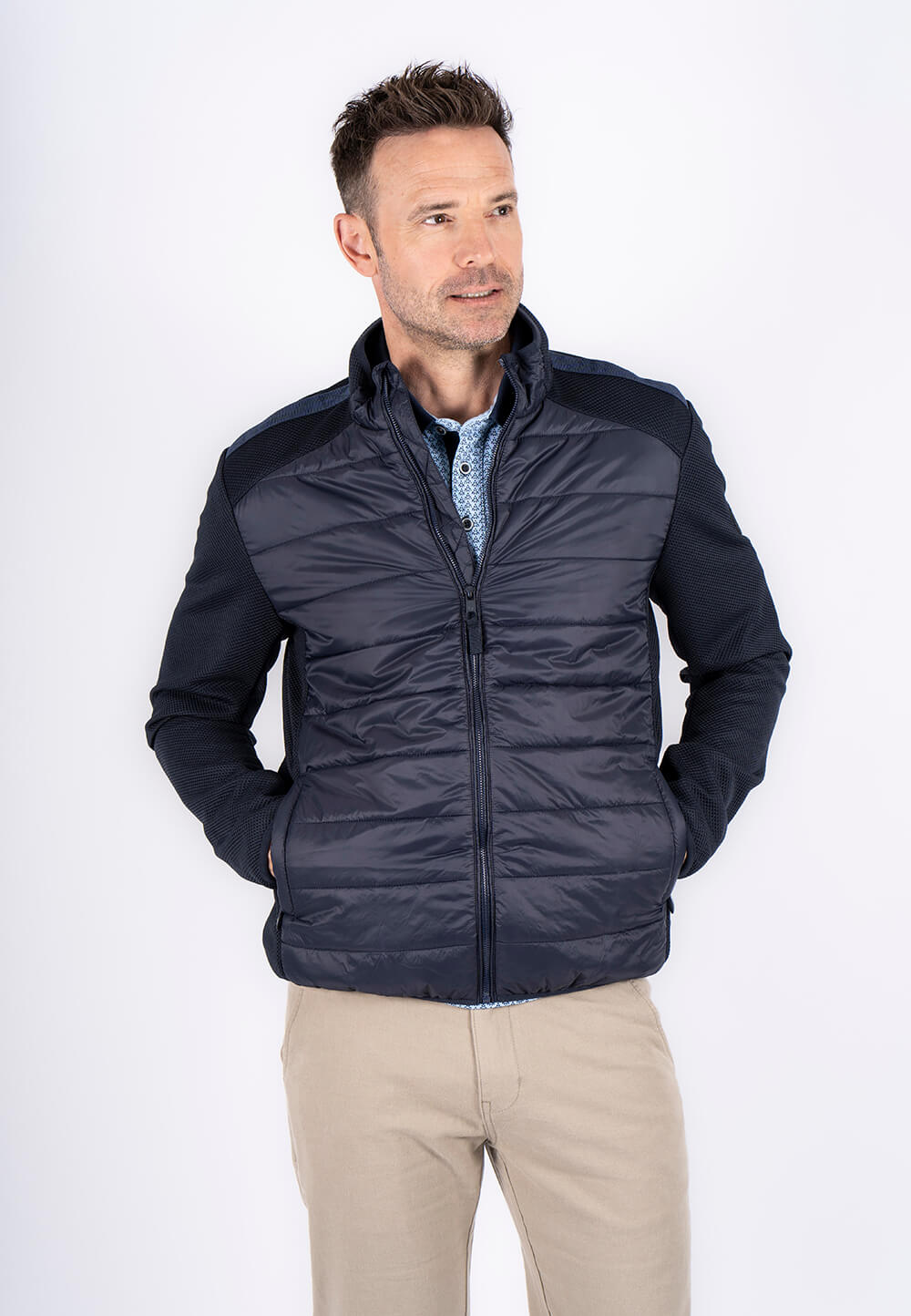 ID: 09-100467, 7050 Klassisk overgangsjakke, med praktiske detaljer i navy Regular fit modellen måler 186cm. og bruger str. L 100 Polyester