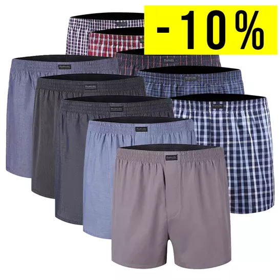 10 Boxershorts i vævet stof. Løstsiddende og med gylp åbning. Blød indvendig elastik.