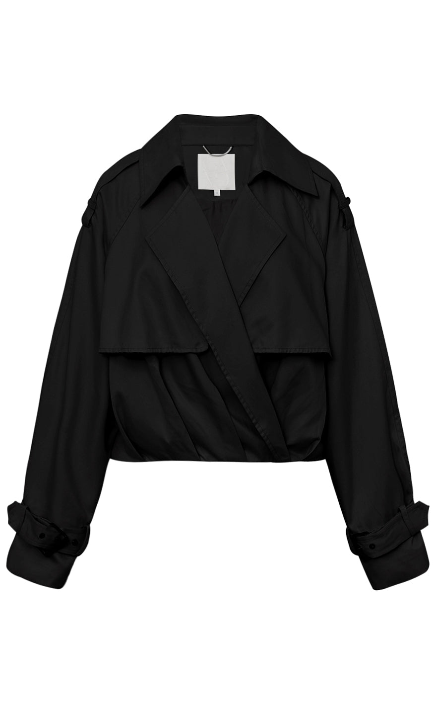 Jakke fra Gossia Kort jakke fra Gossia i sort. Jakken kommer i en lækker kvalitet, har fine spændedetaljer ved ærmerne samt et læg i taljen. Størrelsesguide: Bryst:34126 cm, 36130 cm, 38134 cm, 40138 cm, 42142 cm, 44146 cmLængde for:3455 cm, 3656