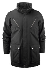 Let vatteret jakke med skjult hætte i kraven. To store lommer samt to brystlommer med synlige metallynlås. Findes både i herre- og damemodel.
